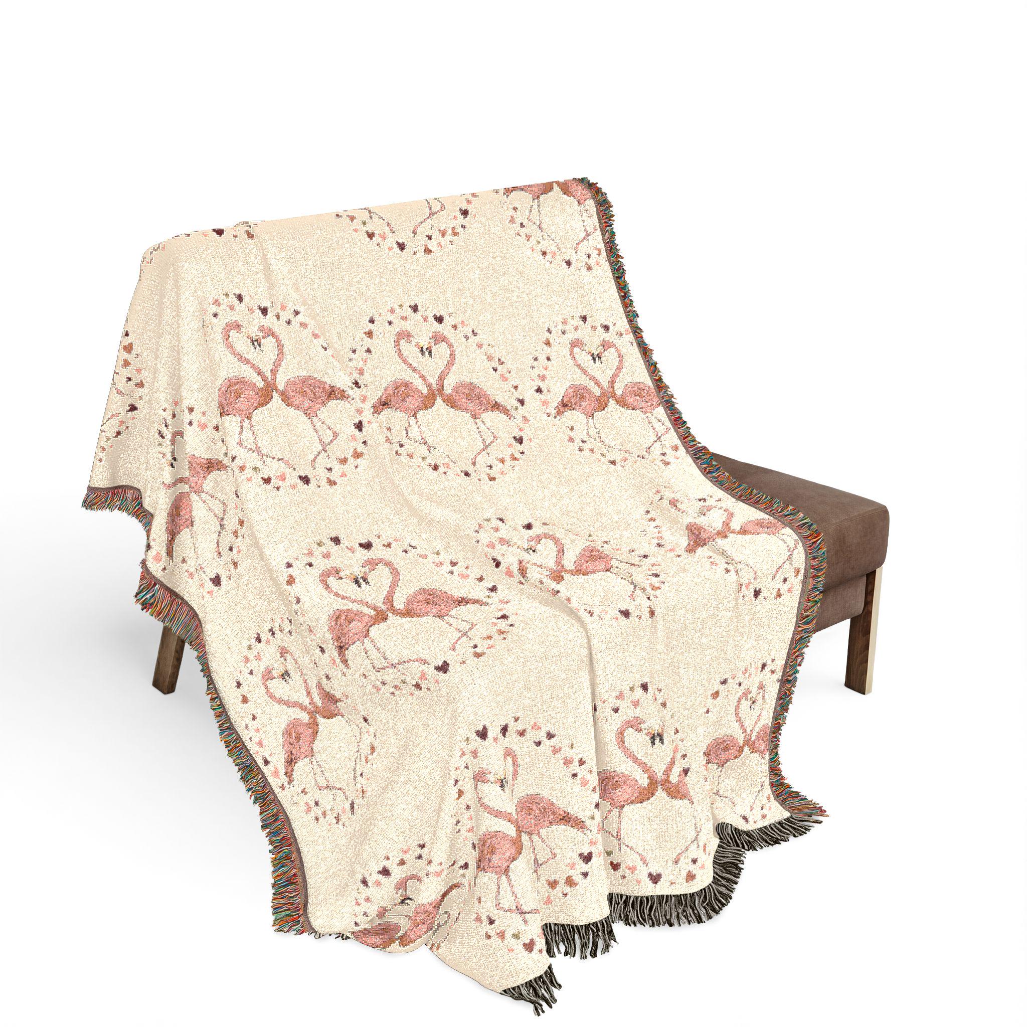 Soft, woven cotton brushed with lively color—this blanket wraps a cozy, whimsical scene of Valentine flamingos nestled in looping hearts. Lightweight but substantial, the woven threads give the flamingo silhouettes a tactile depth that comes to life across the colorful fringed edges. Drape it over a favorite chair, spread it across a loveseat, or tuck it around someone on a chilly evening. The design reads like a small celebration: playful pairs, overlapping heart shapes, and a bright, graphic feel that brings warmth and a touch of romance to quiet nights and shared moments. Choose the artwork variant when you want those bold flamingo shapes and clean color blocks to stay crisp; choose the photo variant if you prefer smoother color transitions. Available in three sizes, it’s crafted from 100% cotton for a natural hand and long-lasting weave. Note that mockups may not perfectly reflect the finished texture and color depth of the woven threads.