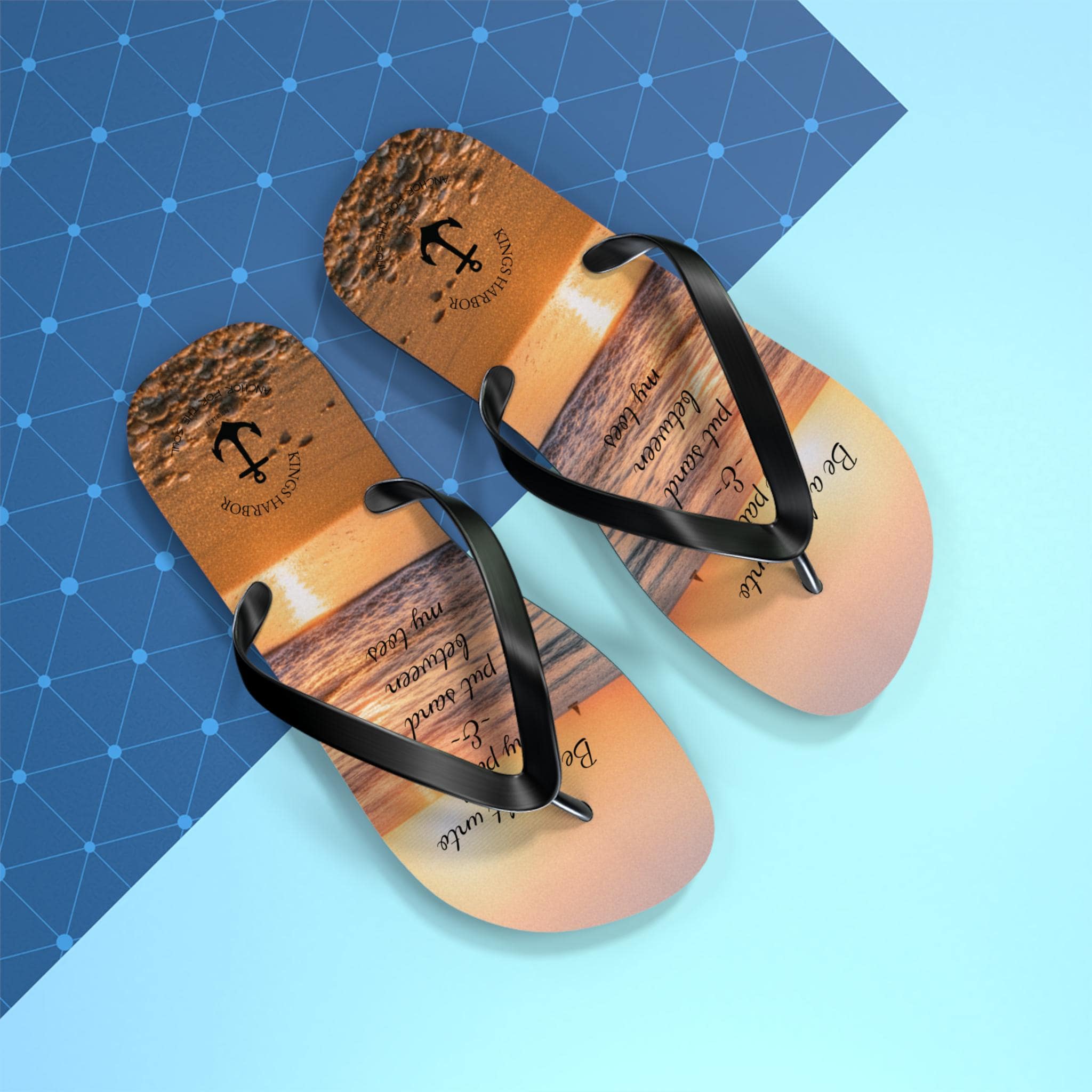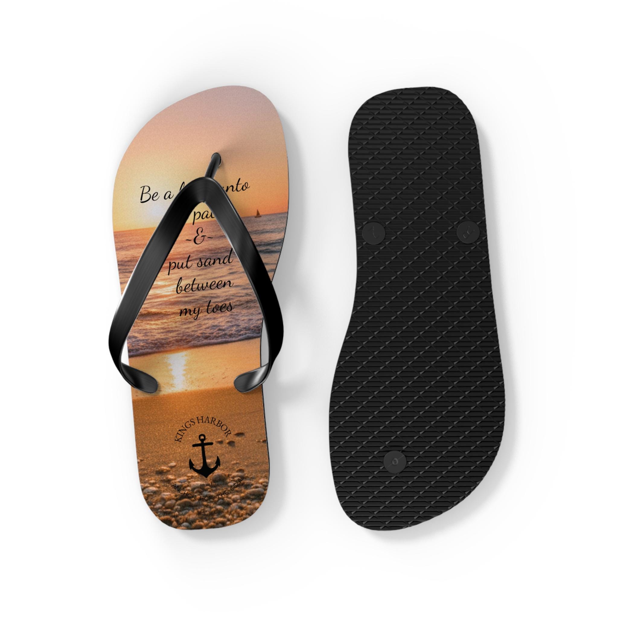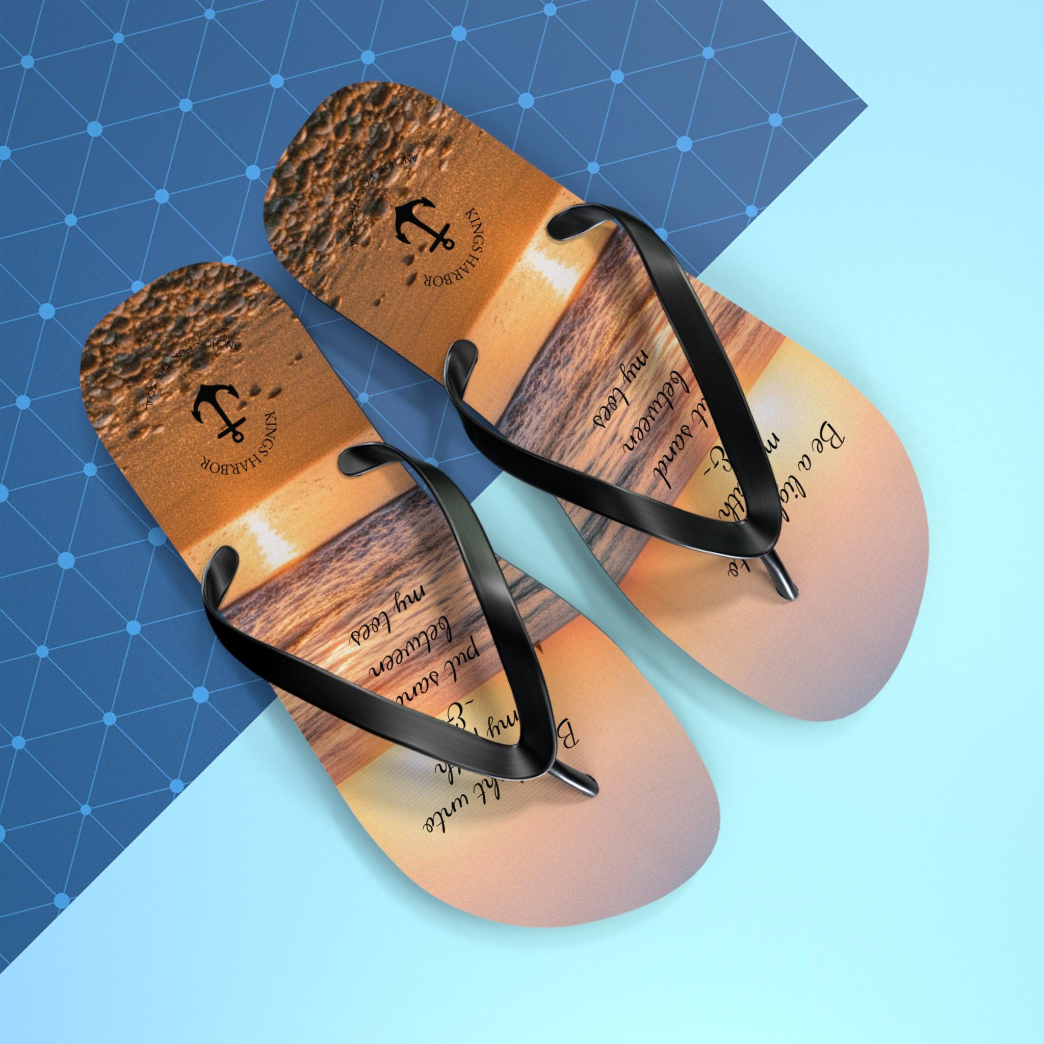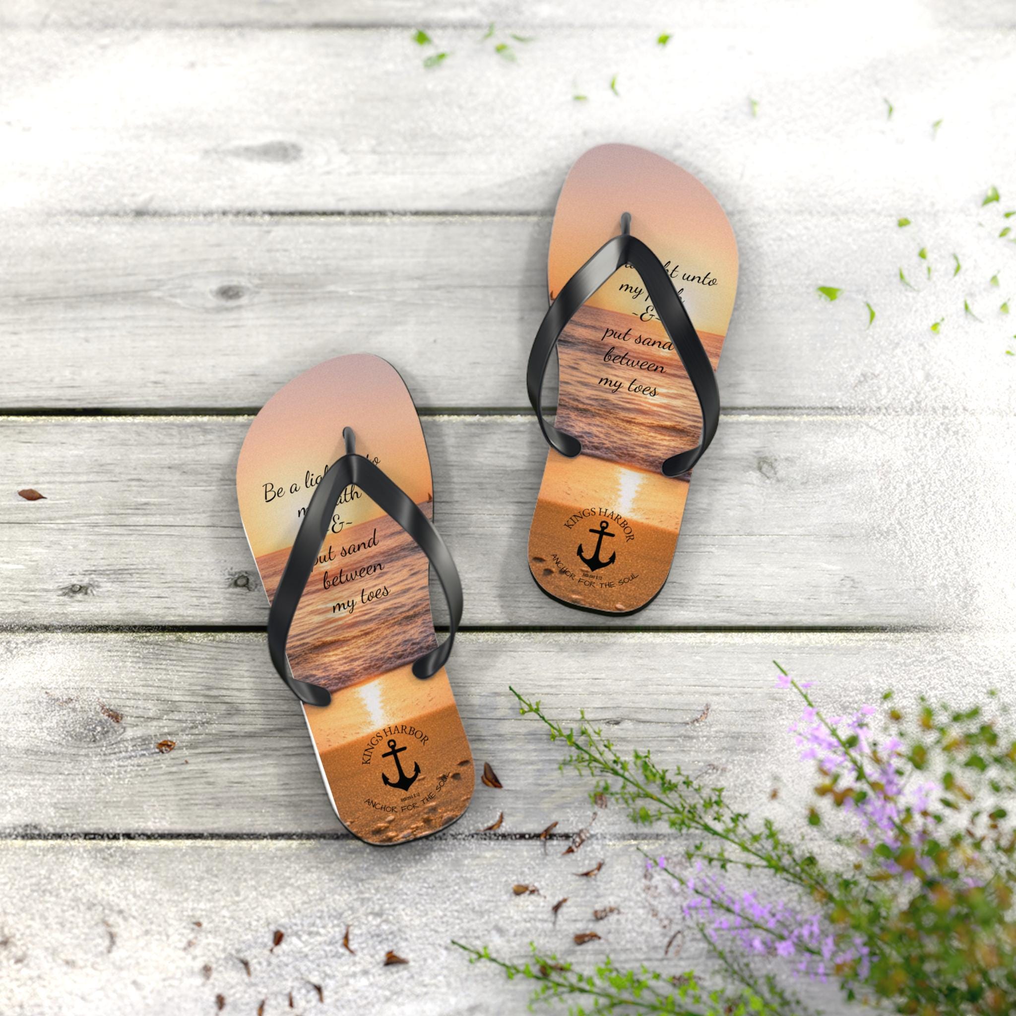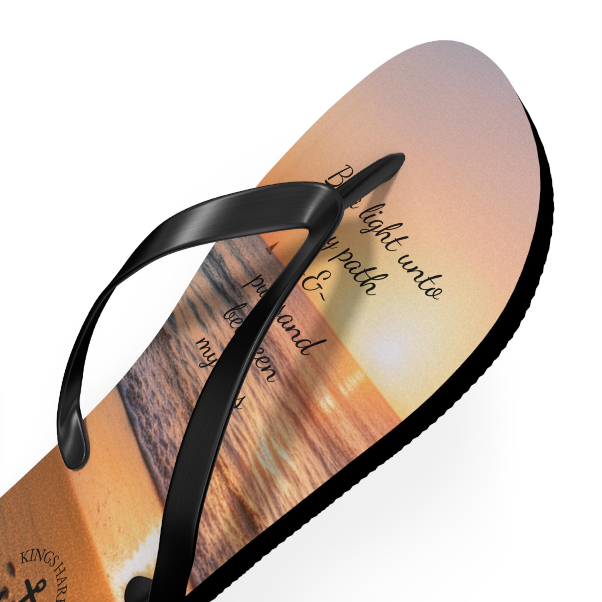 Step into comfort and style with our vibrant Oceanview Sunset Flip Flops! Perfect for sunny days at the beach or casual outings, these flip flops bring a fun, cheerful vibe to your summer wardrobe. The saying says, "Be a light unto my path & put sand between my toes." The soft polyester suede provides a cozy fit, while the slip-resistant EVA sole ensures stability on wet surfaces. Ideal for beach lovers, vacationers, and anyone who enjoys laid-back days, these flip flops make a fantastic gift for birthdays, summer celebrations, and special occasions like beach weddings and pool parties. Enjoy the colorful designs that reflect your personality and make every step a joyful experience!