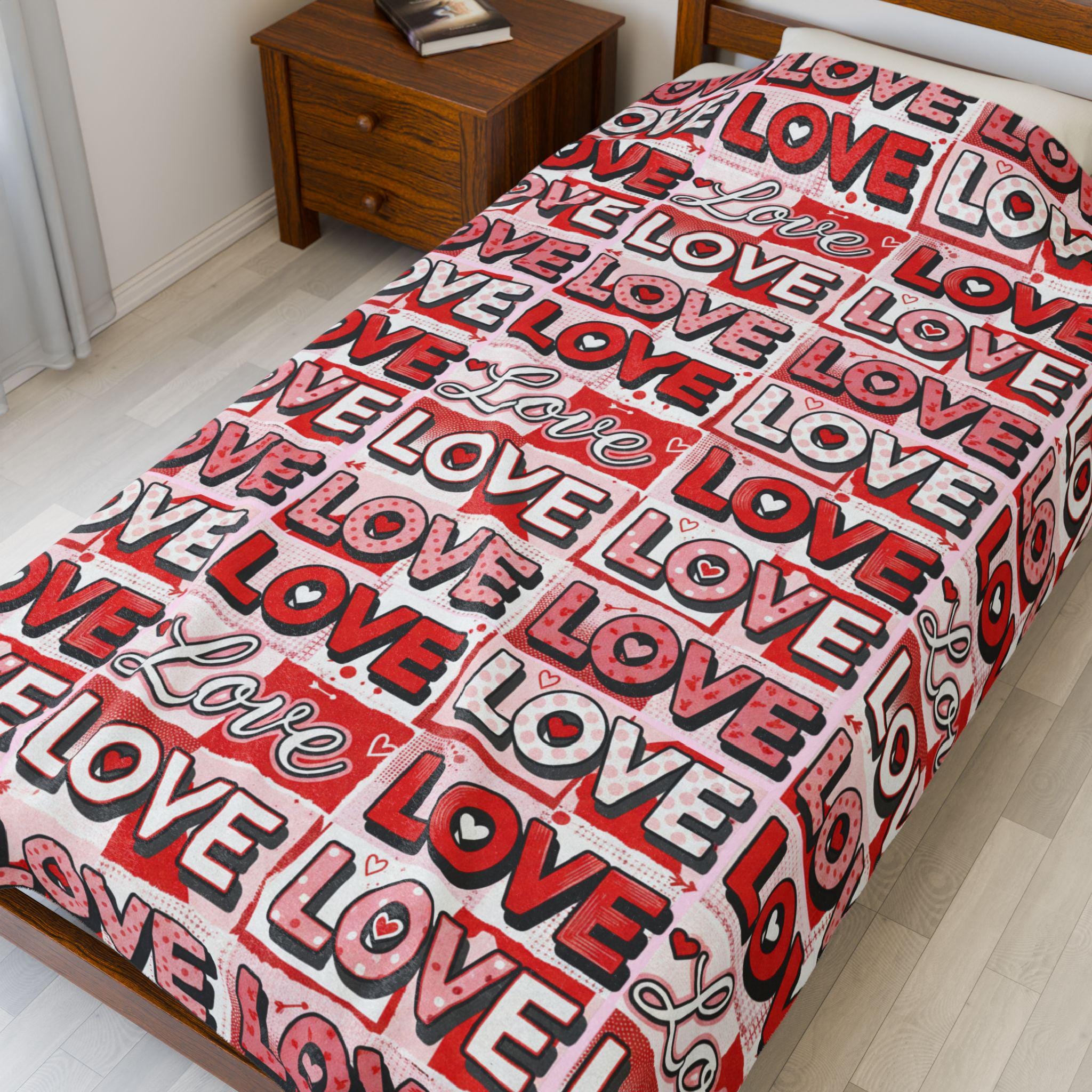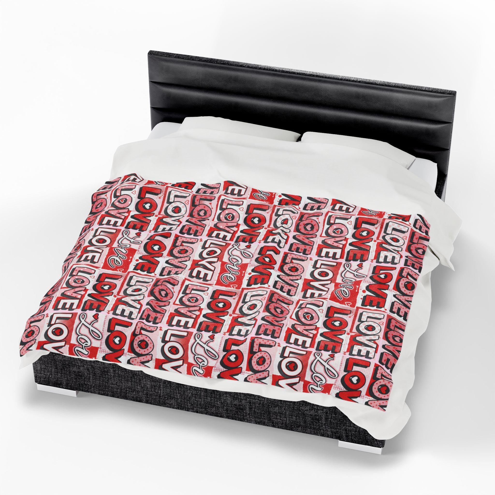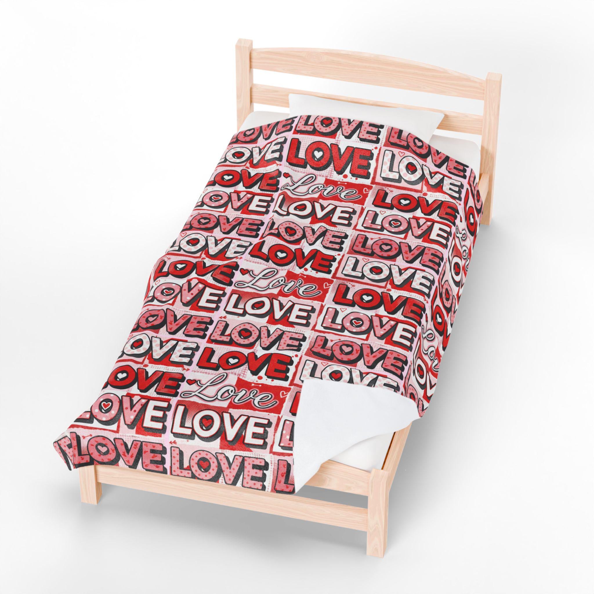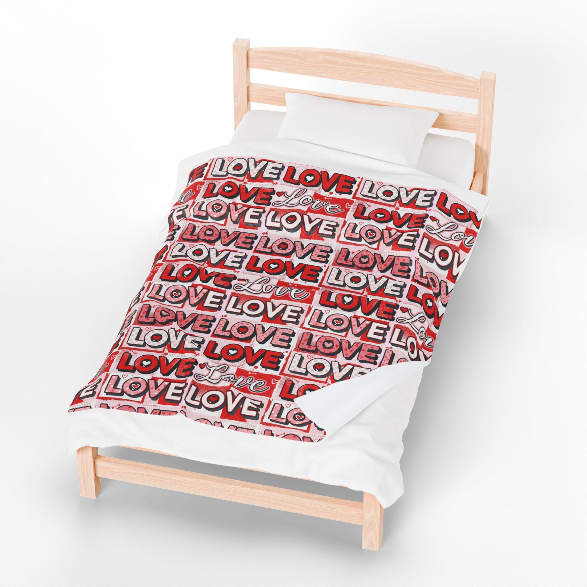 This plush velveteen blanket wraps you in a playful rush of love—swirls of reds and pinks, quirky typefaces, and hand-lettered hearts that feel like a secret note from someone who knows you well. It drapes over a couch or laps like a warm, familiar hug; the print’s lively pattern keeps the mood bright without being loud. Fold it at the foot of a bed for cozy movie nights, bring it to a Galentine’s movie marathon, or tuck it into a care package when words alone aren’t enough. The texture is soft against skin and drapes beautifully, so it becomes part of the room—equal parts comfort and personality. If you collect color, typography, or little moments of sweetness, this blanket slips into that life like it belonged there all along.