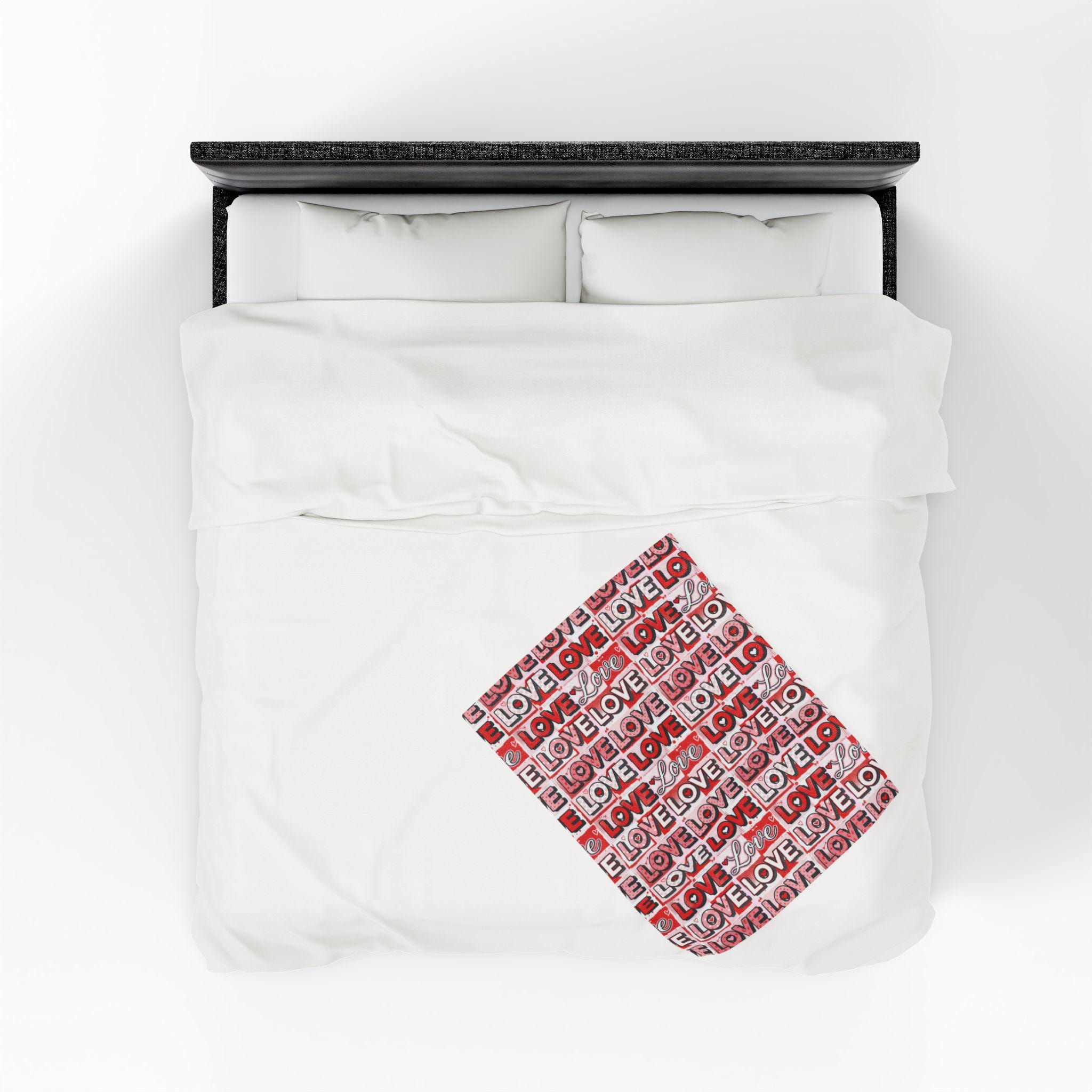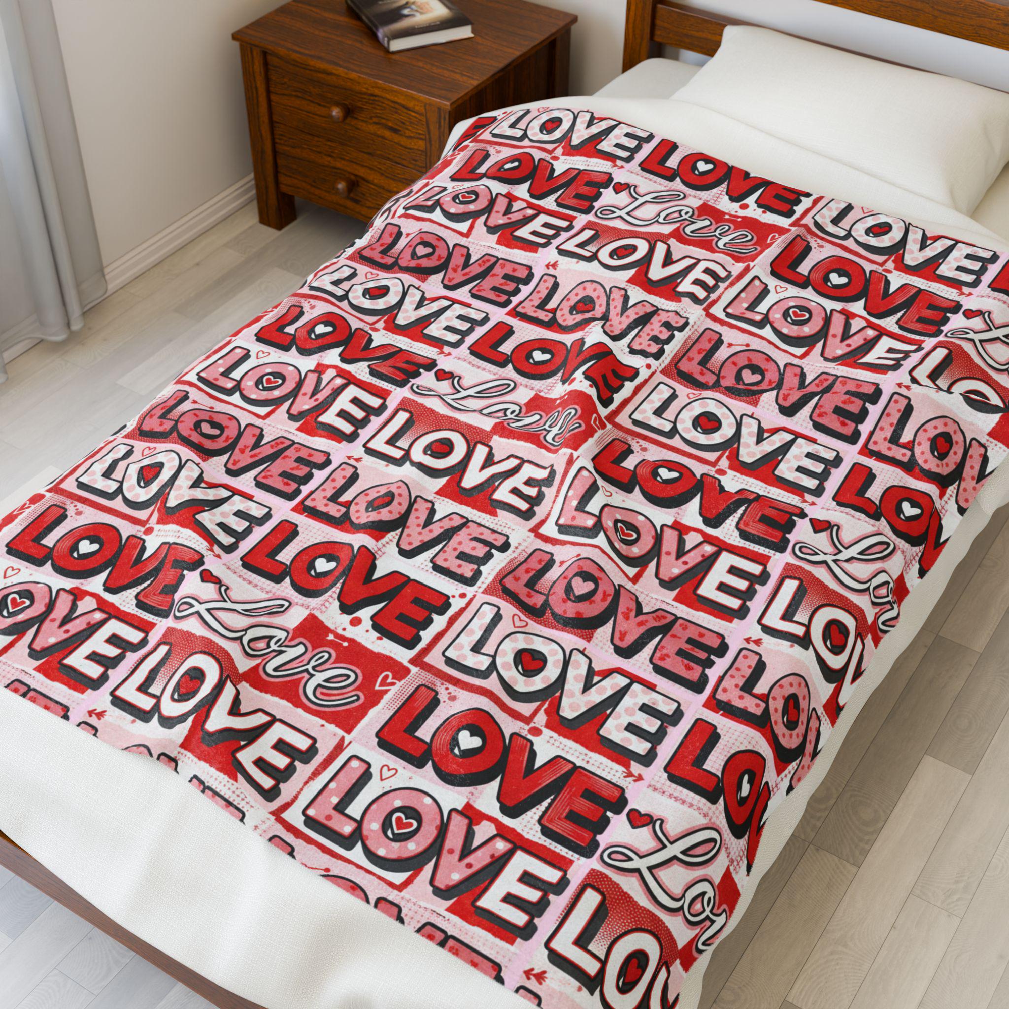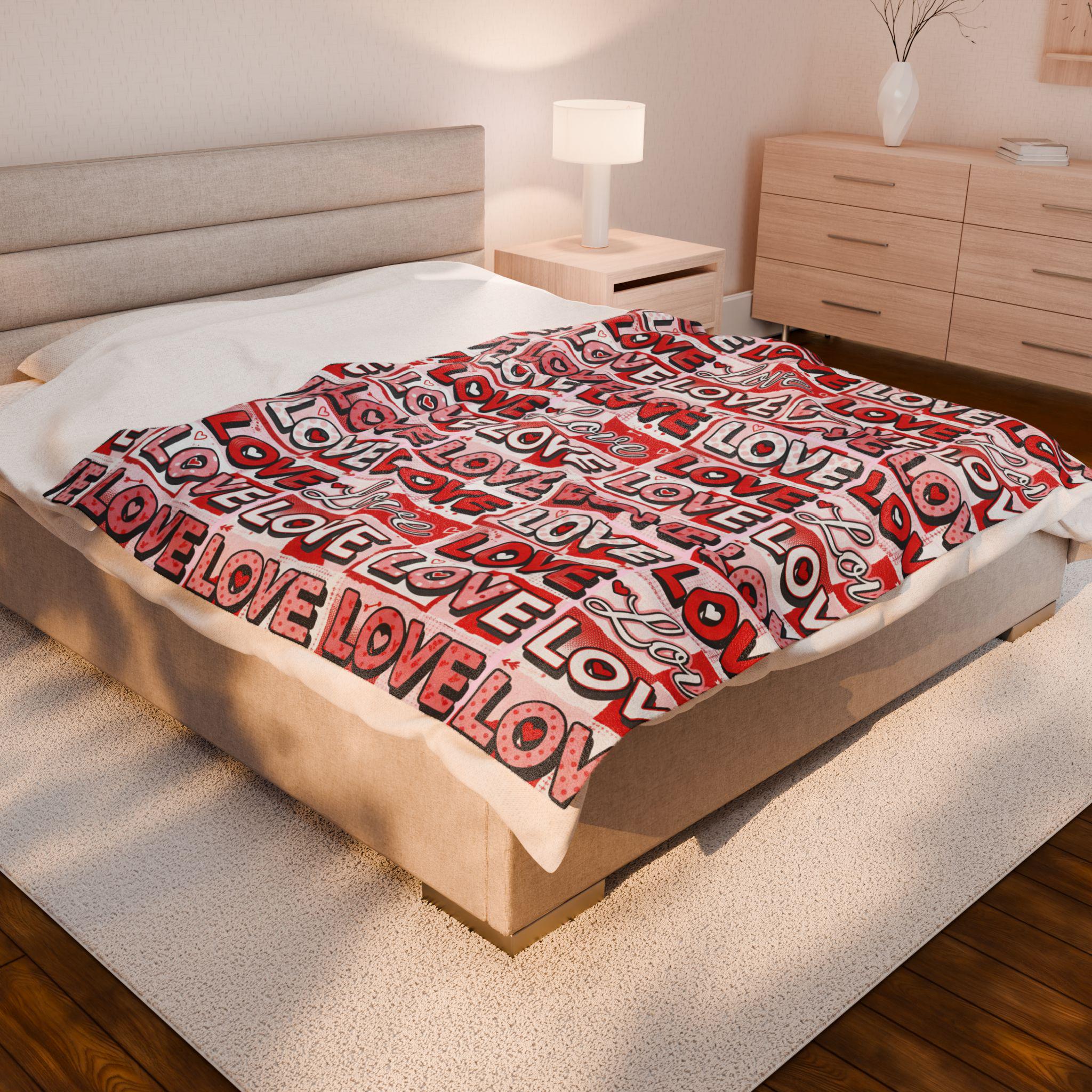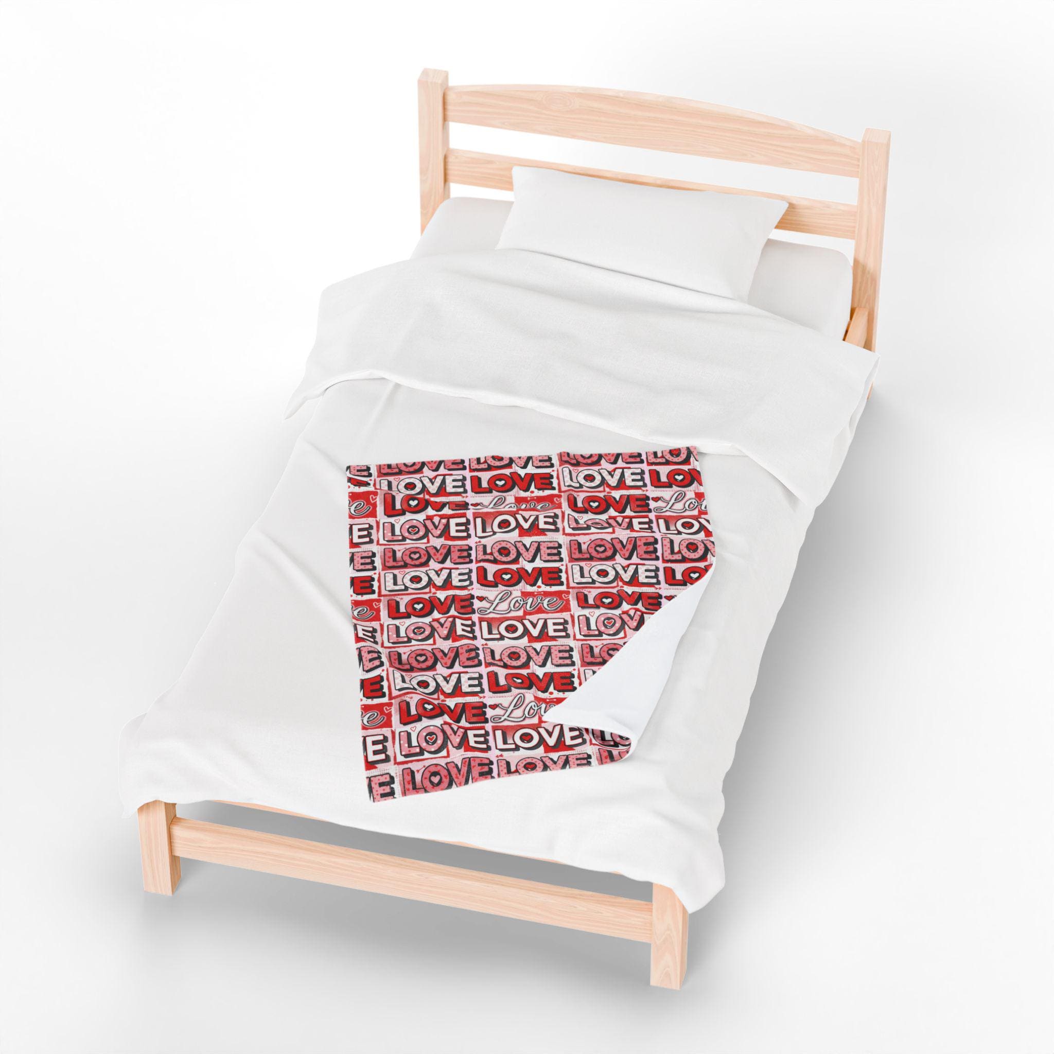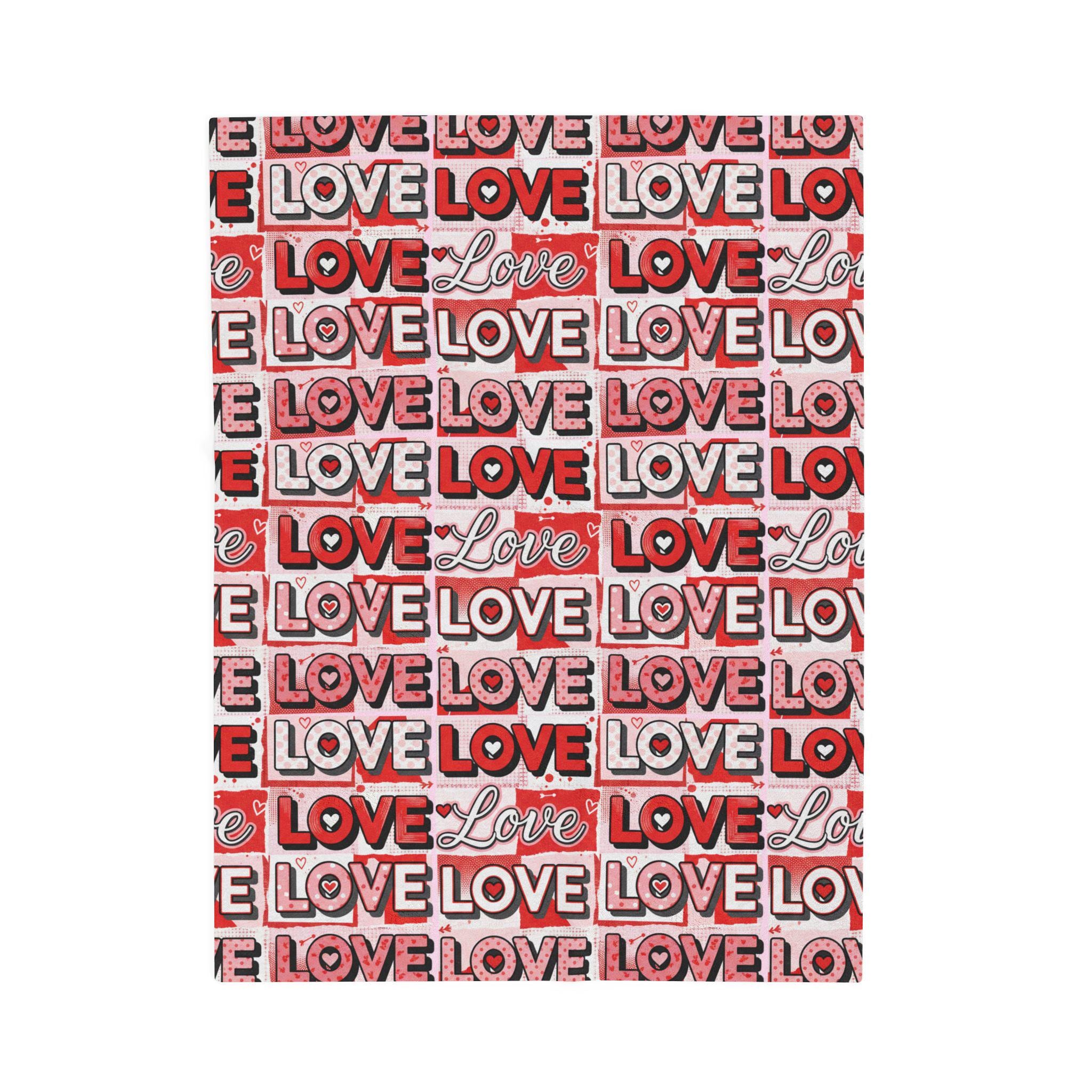 This plush velveteen blanket wraps you in a playful rush of love—swirls of reds and pinks, quirky typefaces, and hand-lettered hearts that feel like a secret note from someone who knows you well. It drapes over a couch or laps like a warm, familiar hug; the print’s lively pattern keeps the mood bright without being loud. Fold it at the foot of a bed for cozy movie nights, bring it to a Galentine’s movie marathon, or tuck it into a care package when words alone aren’t enough. The texture is soft against skin and drapes beautifully, so it becomes part of the room—equal parts comfort and personality. If you collect color, typography, or little moments of sweetness, this blanket slips into that life like it belonged there all along.