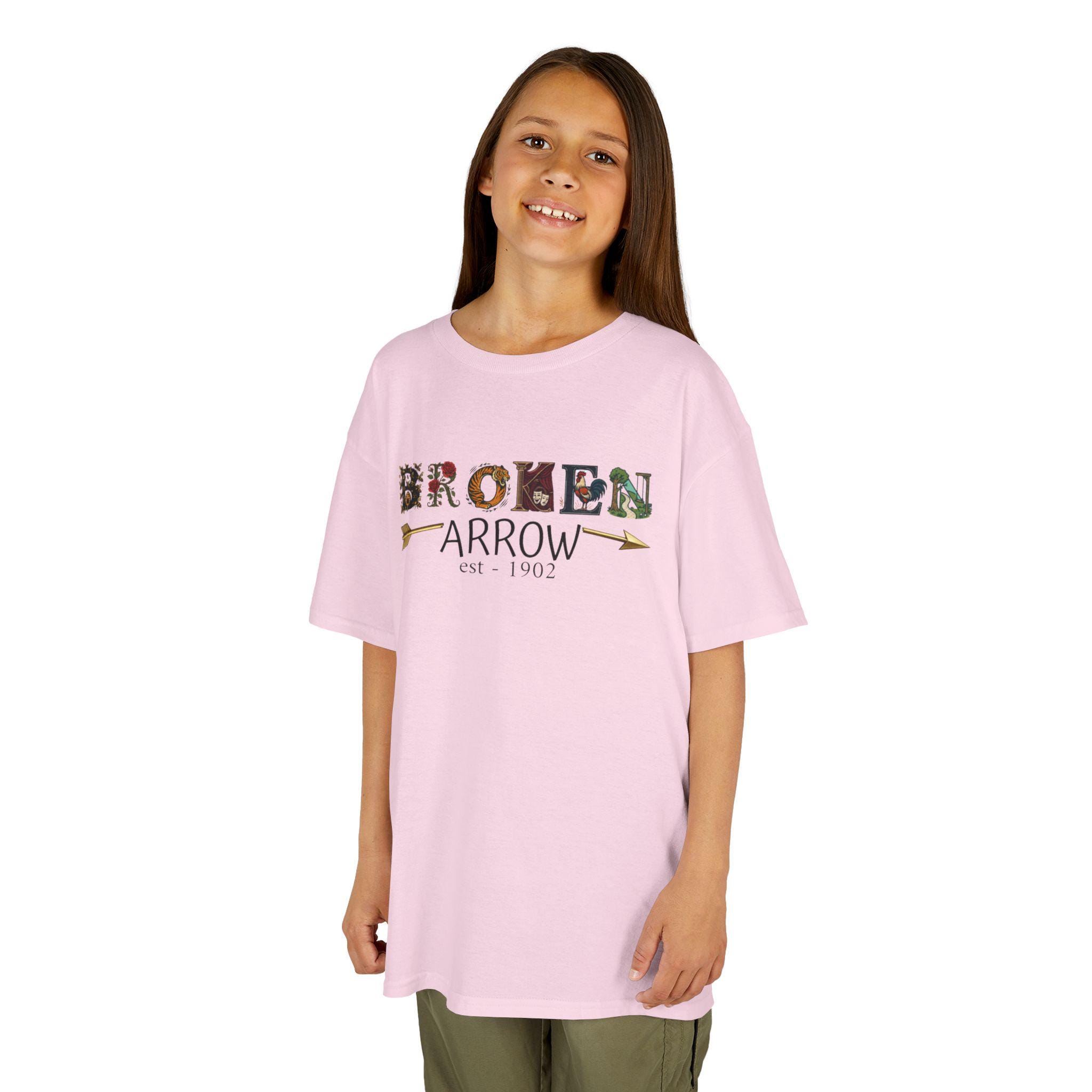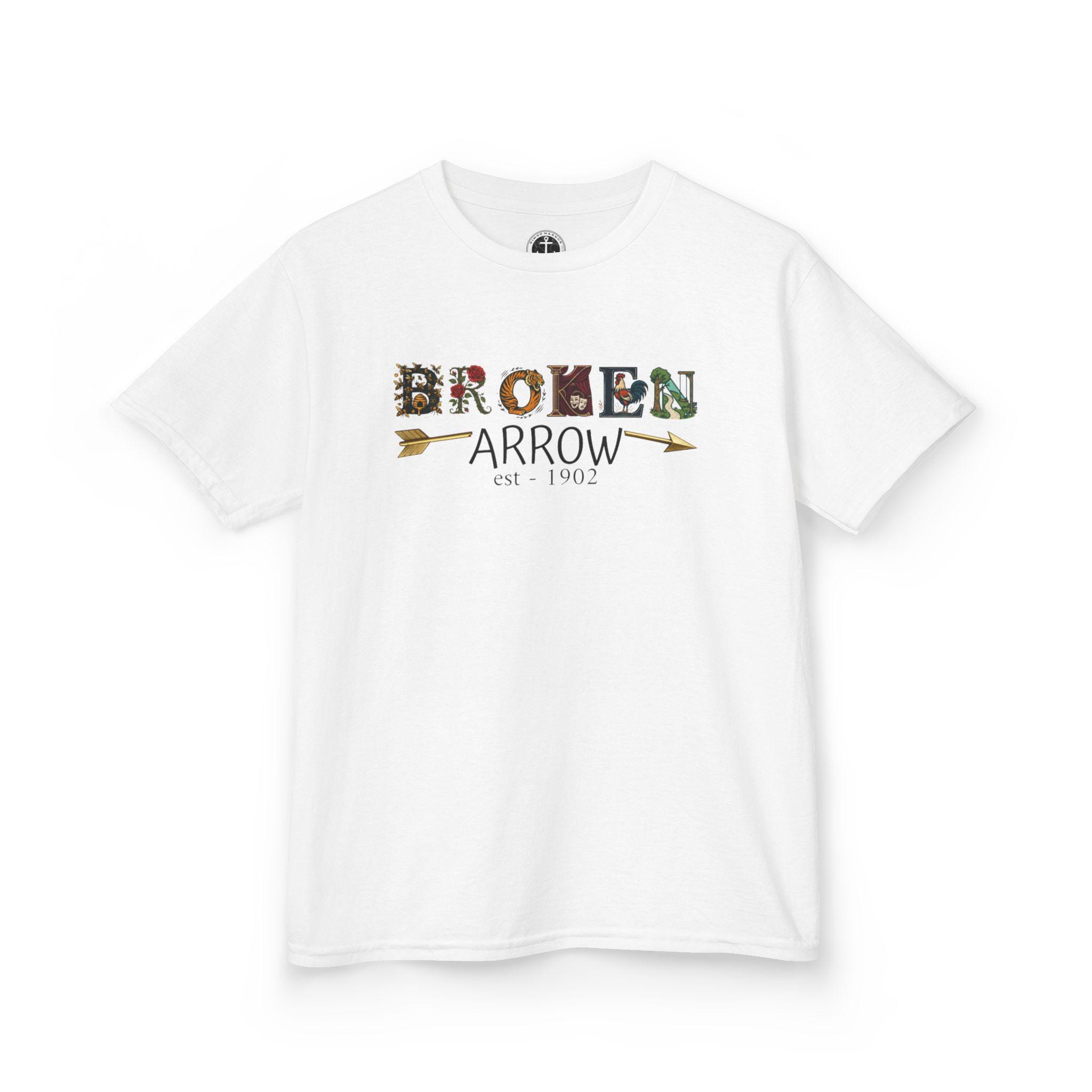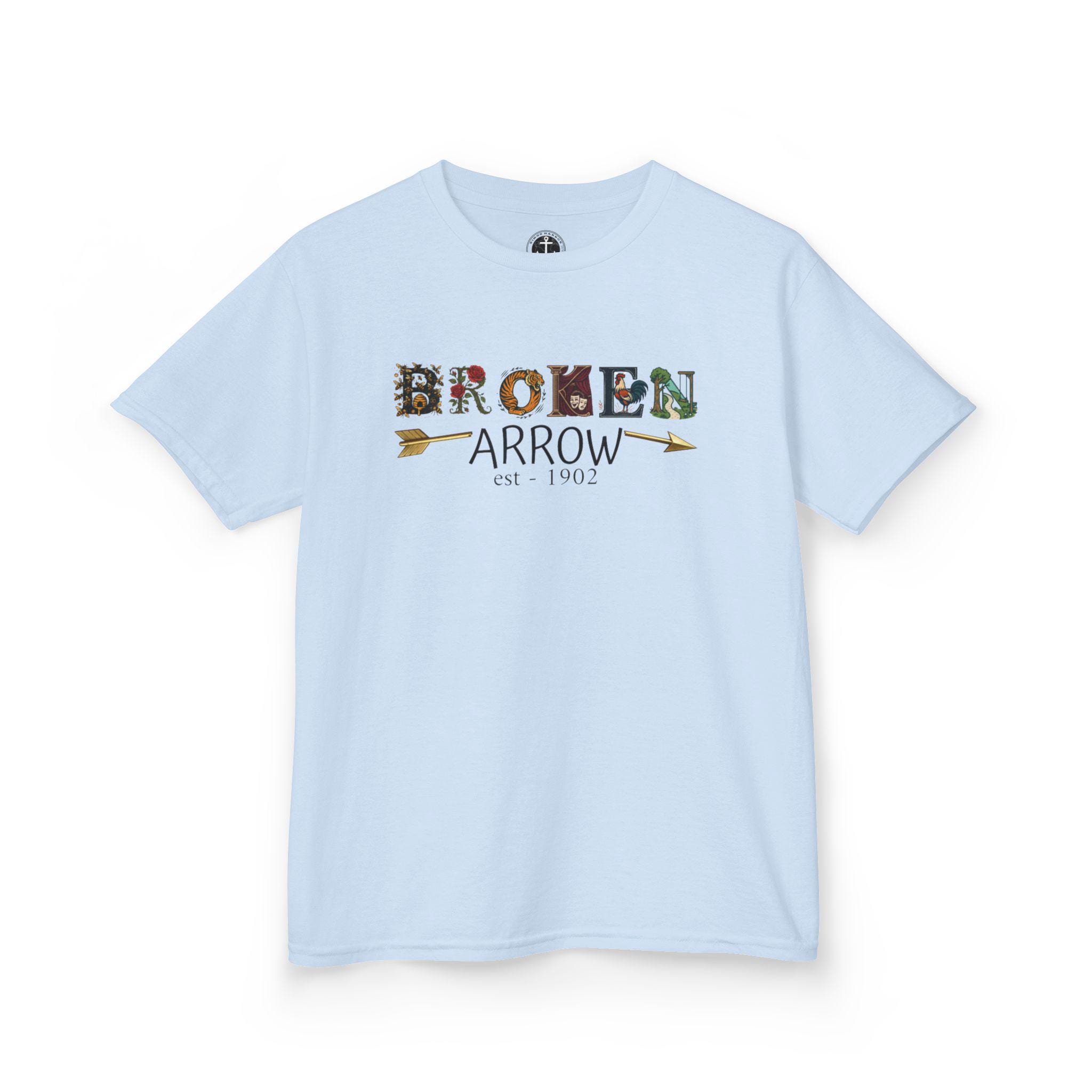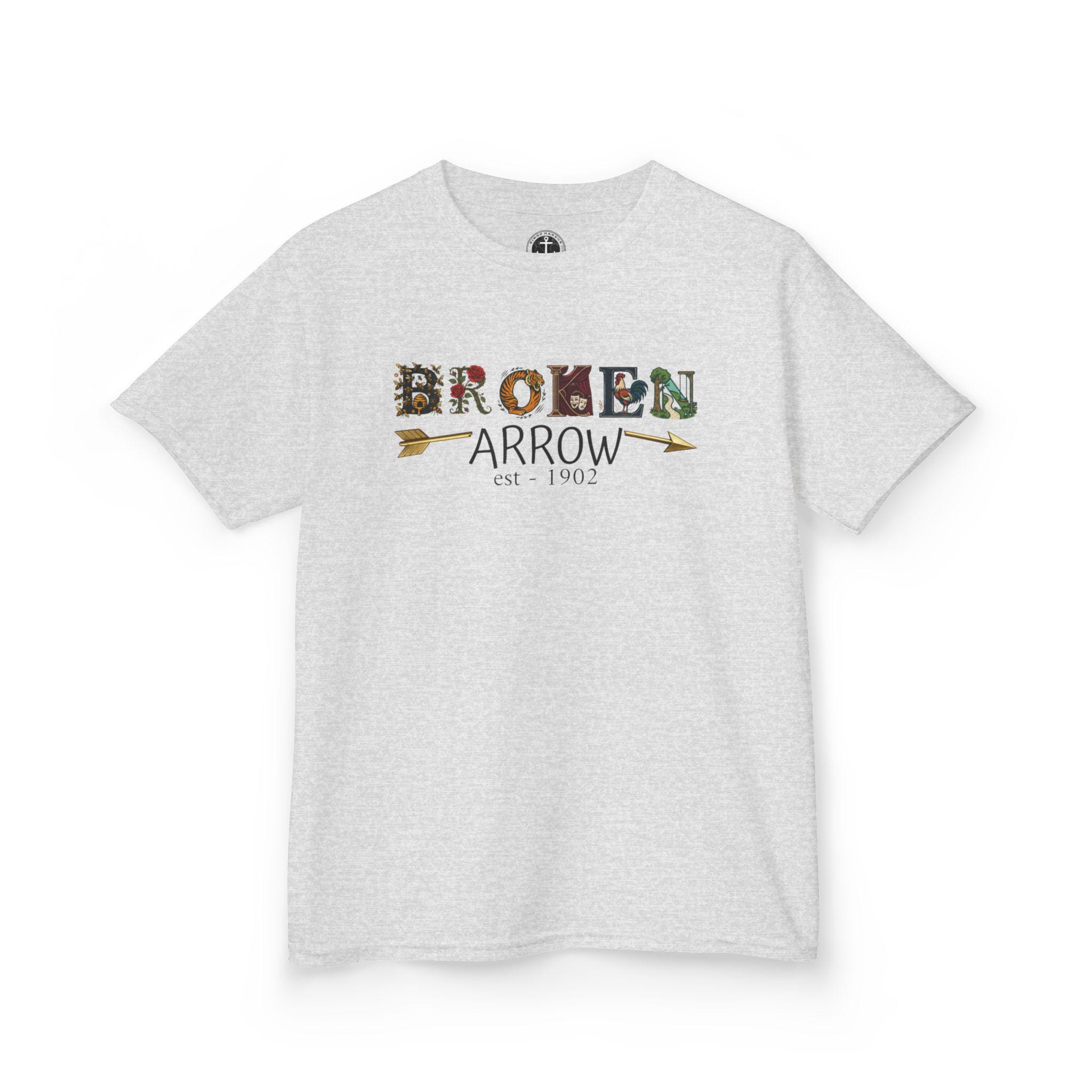 Bright, kid-sized pride for Broken Arrow — a soft, midweight tee that carries the city's heart. The design layers the BA BUZZ, the charming Rose District, the BA Tigers spirit, Rooster Days, and Kristin Chenoweth's Performing Arts center, plus local parks. It feels like a day spent wandering town festivals and cheering at Friday night lights: lively, familiar, and full of local color. Parents will appreciate the comfortable crew neckline and tear-away label; kids will love wearing a small-town story they recognize. Wear it to school events, community parades, family outings, or neighborhood strolls — a way for little Broken Arrow fans to show where they belong.